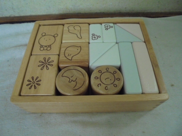 - 幼児向け 木製 積木セット/乳幼児 玩具・おもちゃ/ナチュラル 遊具/木箱付積み木セット/良品