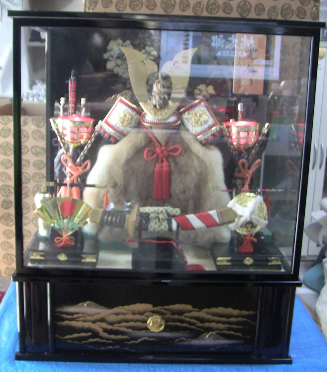 - ★五月人形 兜飾り オルゴール付き ガラスケース難あり★長期保管品【KT0434】