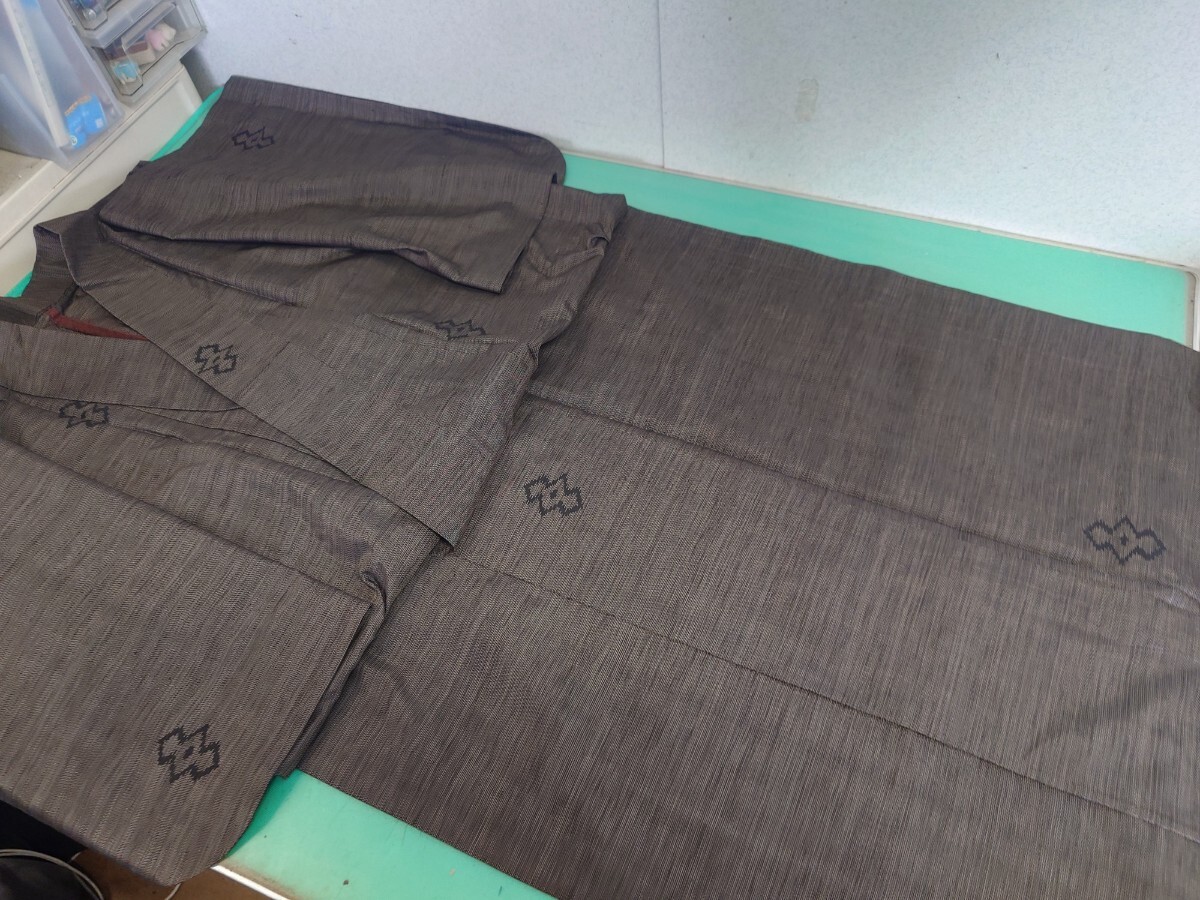 > ●151 高級 大島紬 泥染め? 三階菱 三連菱 紋 模様 同窓会 観劇 美術館 ショッピング 茶話会 オシャレ着 夏 着物 レトロ アンティーク ③