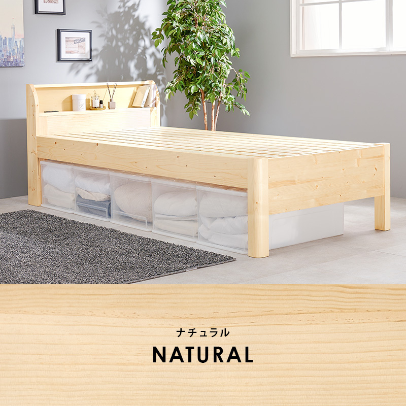 - 棚付きコンセント付きシングルベッド シングル ナチュラル 耐過重400キロ 床面高さ3段階
