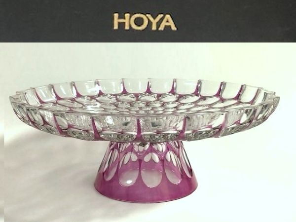 - ◎HOYA 保谷 紫色被クリスタル 28.5cm足付菓子皿◎z56