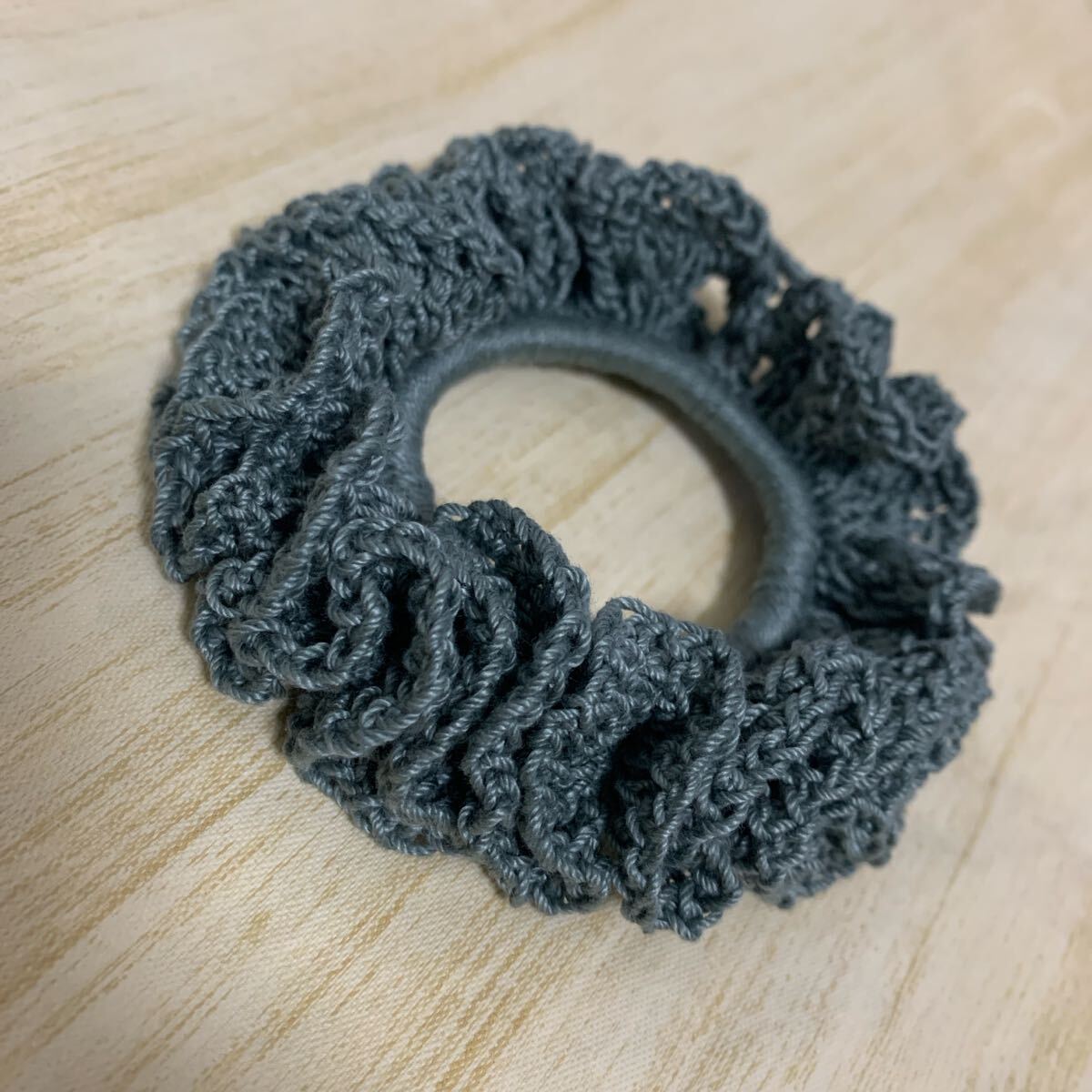 - 【d18】かぎ針 シンプル モスグリーン レース糸 フリル シュシュ