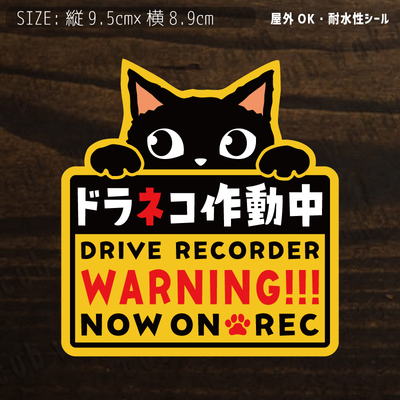 - ドラネコ作動中①黒猫 防水ステッカー シール ドライブレコーダー ドラレコステッカー 猫 車 追突防止 あおり運転防止 0065