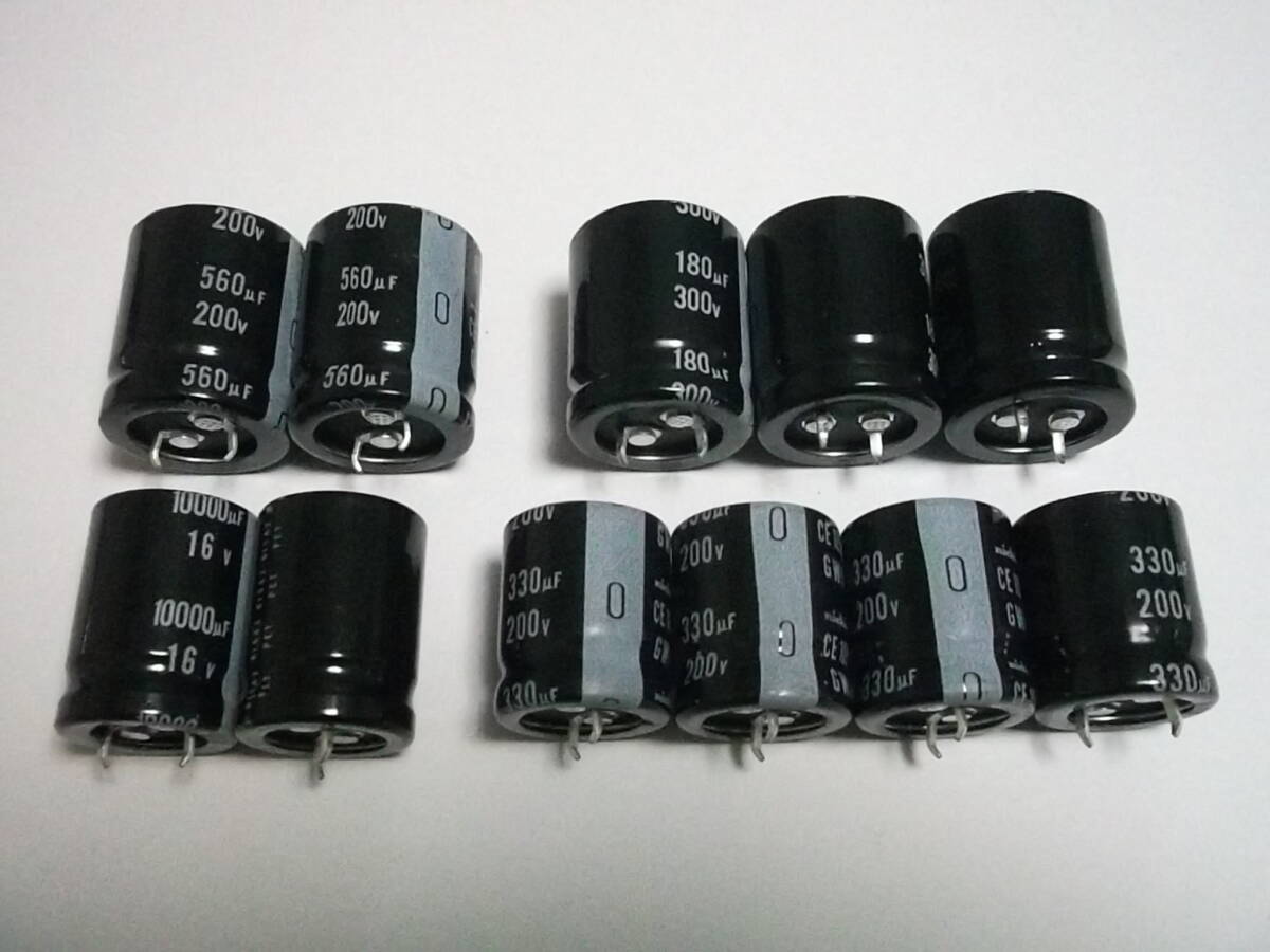- 11個 ニチコン アルミ電解コンデンサ 16V10000μF、200V330μF、200V560μF、300V180μF