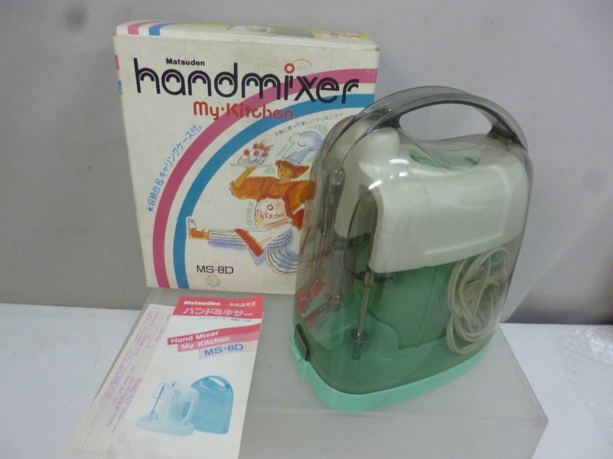 > ★370)収納ケース付ハンドミキサー・Matsuden MS-8D ステンレスビーター 箱、説明書あり※中古品/動作OK/使用感現状品■60