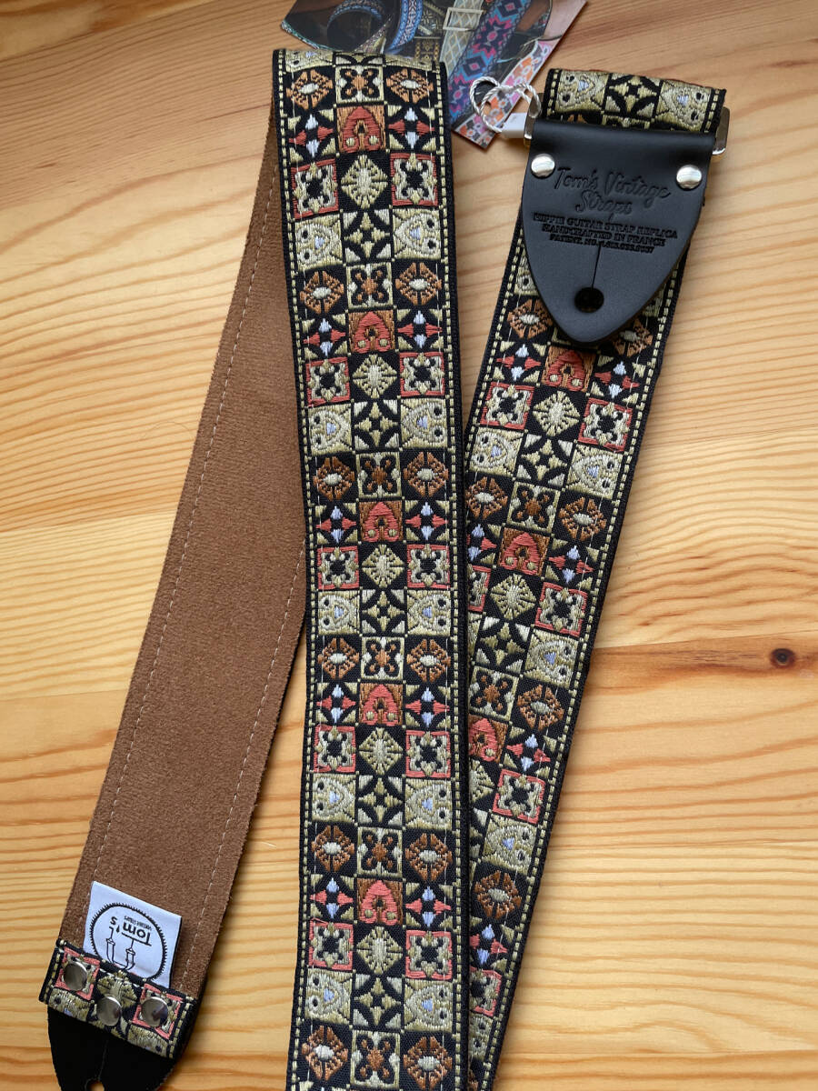 > Tom's Vintage Straps Gold 'Woodstock' ハンドメイド ギターストラップ 本革エンド フランス製