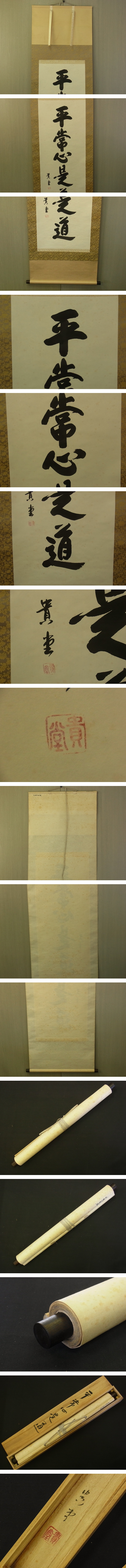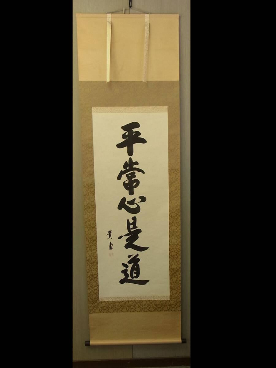 - 【模写】 t1860 蔵出 掛軸 貴堂 平常心是道 絹本 共箱 書画骨董 仏語 一行書