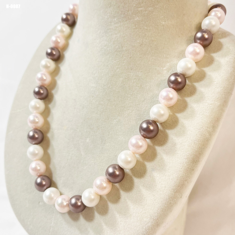 > 送料無料!! 3色 パール風ネックレス アクセサリー フェイクパール かわいい 淡色 ピンク ホワイト グレー ◇N-0087