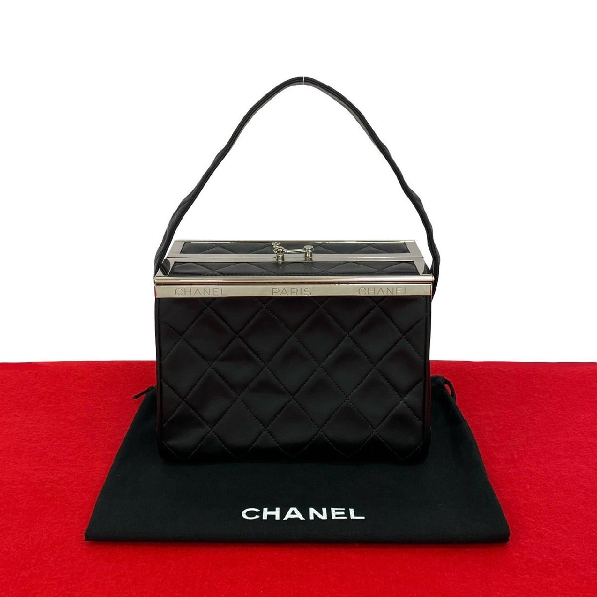 - 極 美品 袋付 シール有 4番台 CHANEL シャネル マトラッセ ココマーク ラムスキン 本革 バニティバッグ ハンドバッグ ブラック 14005
