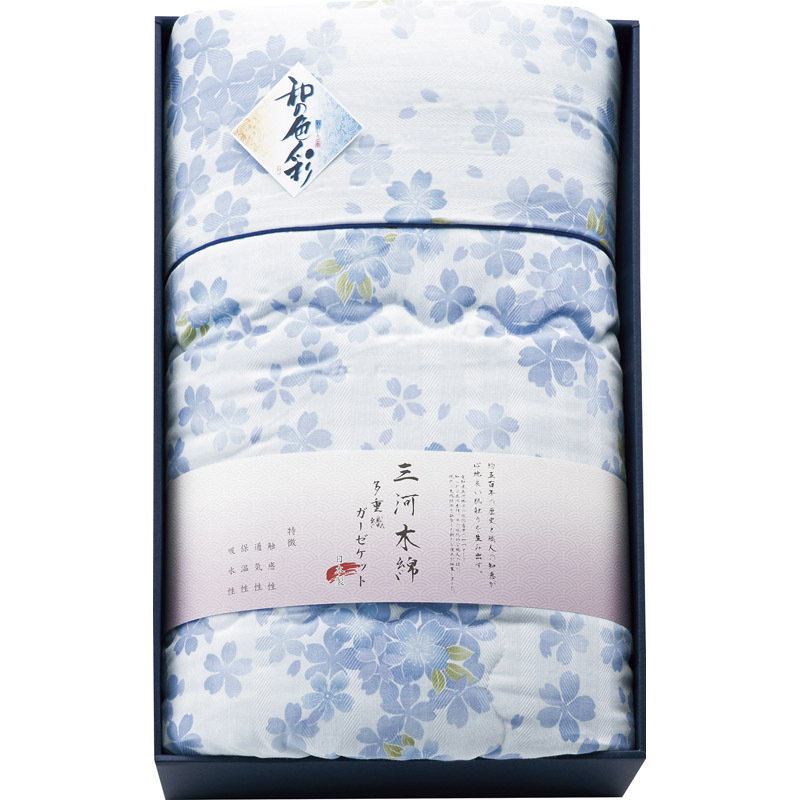 - 愛知三河木綿 ダブルガーゼ 羽毛タッチ中わた 肌布団 ブルー WK1524 【単品】