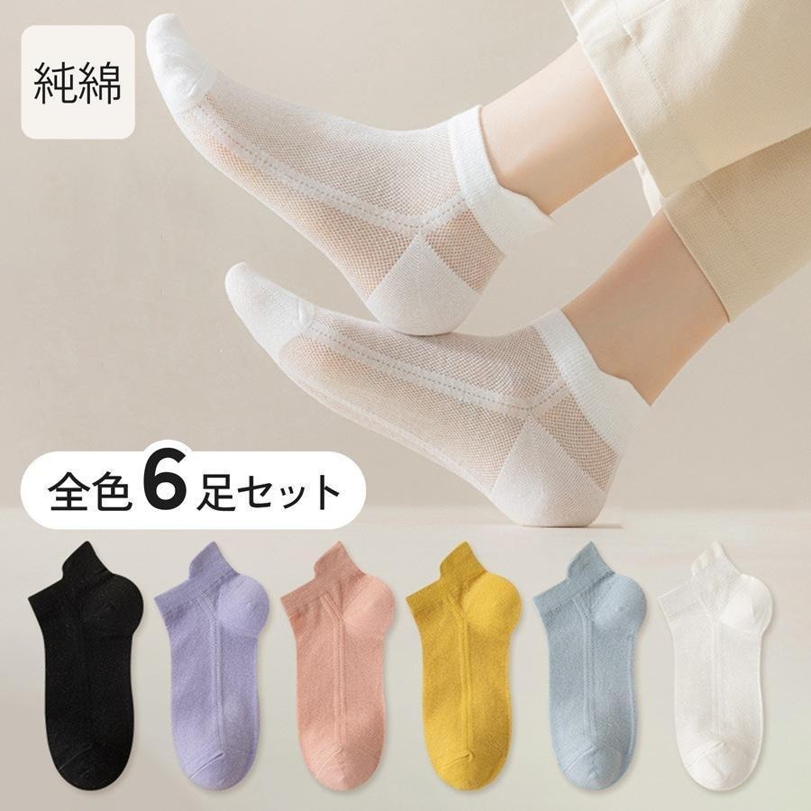 - 靴下レディースくるぶし通気性抜 純綿メッシュソックス6足セット抗菌防臭靴擦れ防止