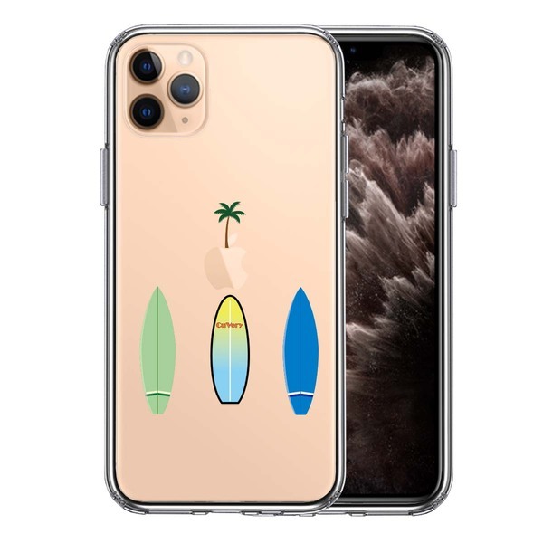> iPhone11proケース クリア サーフボード スマホケース 側面ソフト 背面ハード ハイブリッド