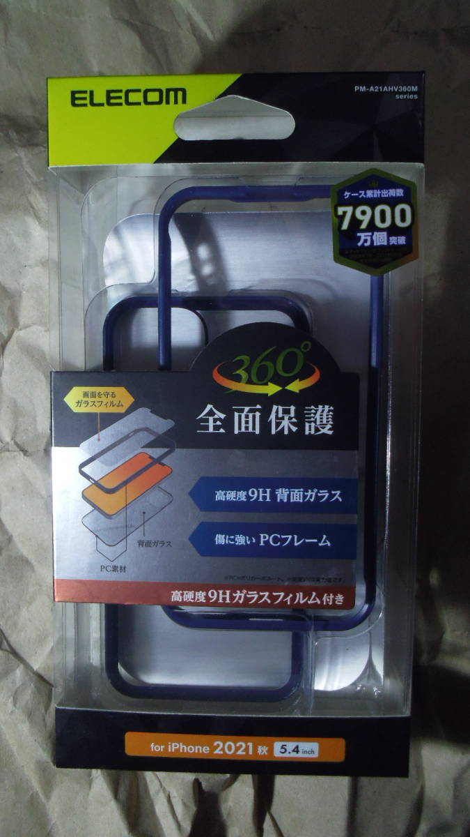 > ELECOM iPhone 13 mini ハイブリッドケース 360度保護 背面ガラス ブルー 前面と背面強化ガラスと側面傷に強いポリカーボネート 定形外390~
