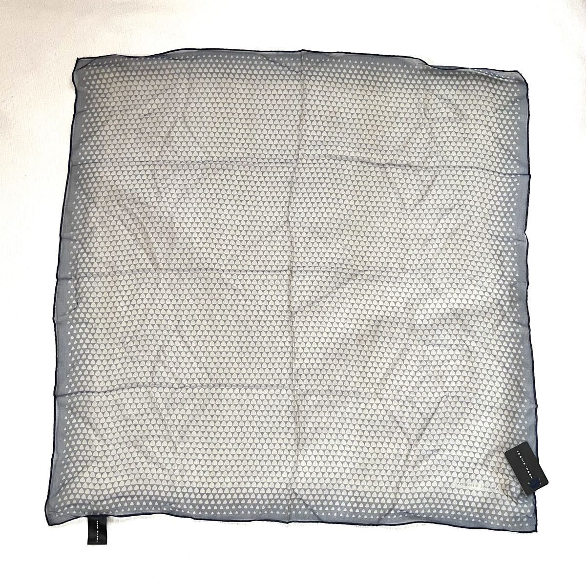 - 未使用 ヨシエイナバ yoshie inaba スカーフ シルク シルクスカーフ 絹 タグ付き ネイビー 薄手 56cm