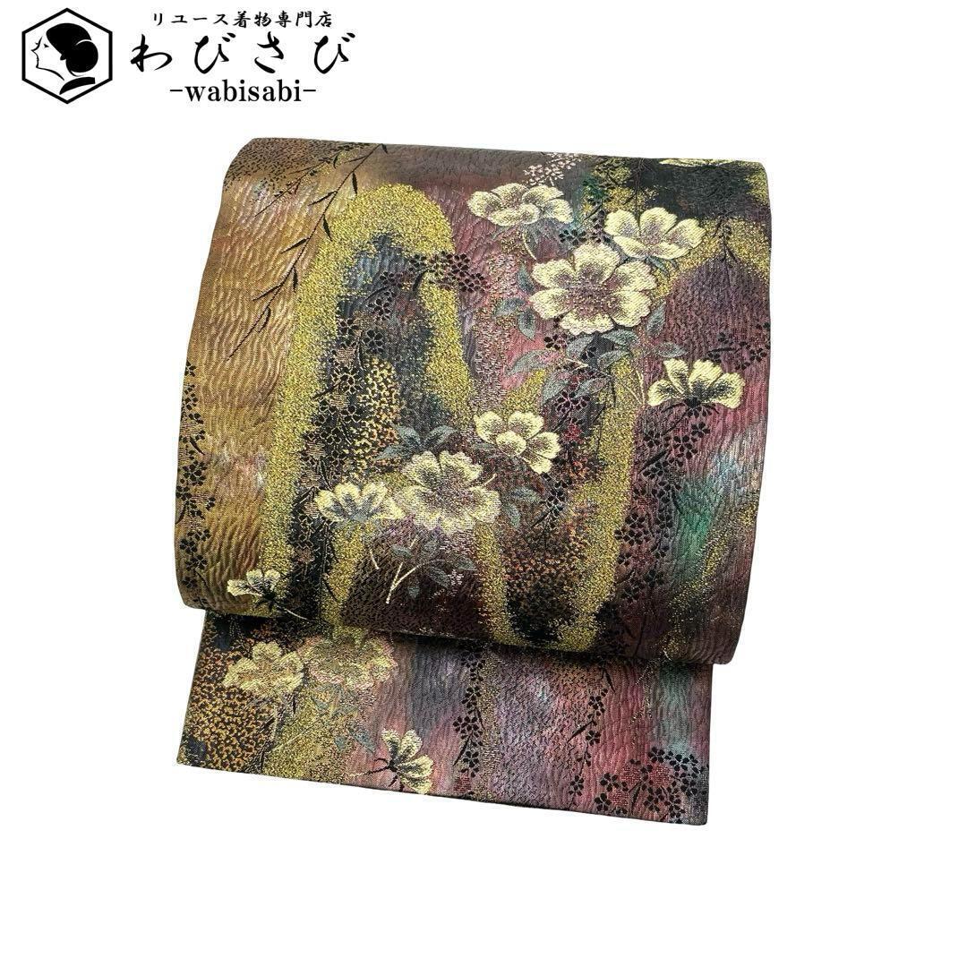- 袋帯 花柄織模様 グラデーション 金糸 O-3748 着物 きもの kimono 和服 和装 中古 リサイクル着物 【送料無料】