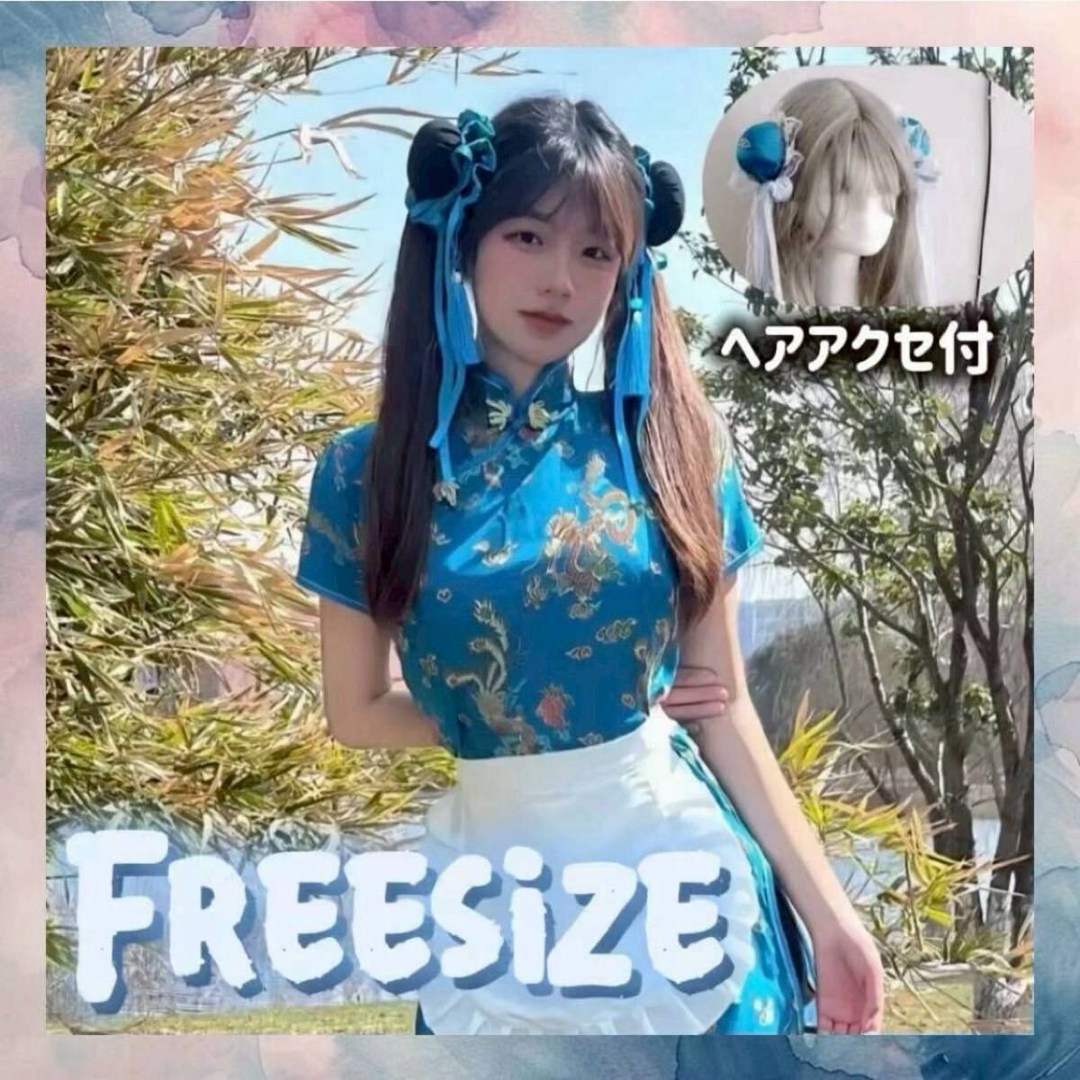 - コスプレ チャイナドレス ハロウィン 3点セット パーティ 仮装 ミニスカート 青
