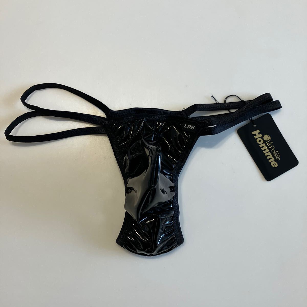 - ラポームオム メンズ La-pomme homme メンズ エナメル生地 艶やか 3Dポーチ ハーフバックビキニ ブラック M