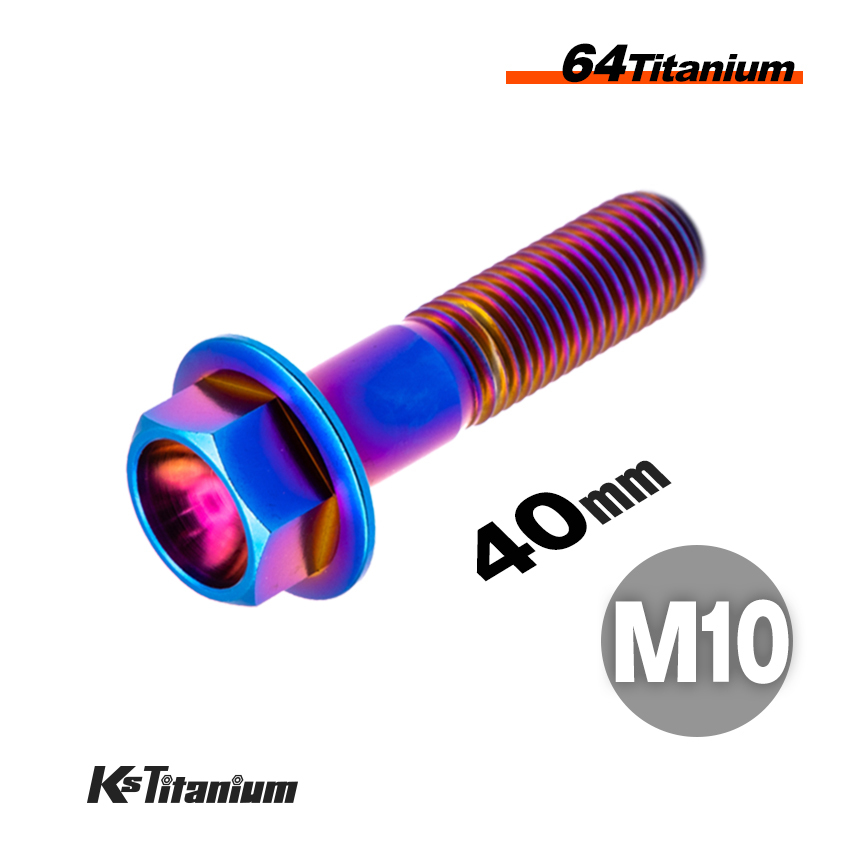 - チタンボルト M10×40 P1.25 焼き色 1本売り 64チタン フランジ スレッド 25 バイク レストア パーツ