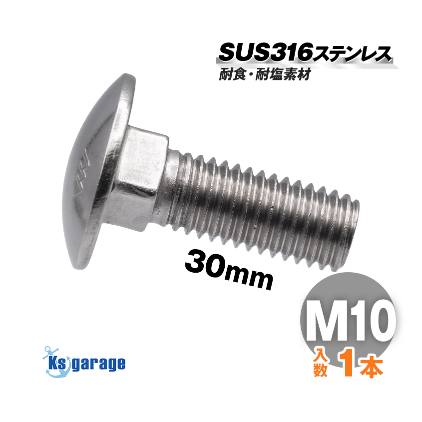 > SUS316 ステンレス ボルト M10×30 P1.50 (バラ売り) 角根丸頭ボルト 全ネジ 船舶用 サーチライト 交換用取付ボルト 耐食ステンレス製