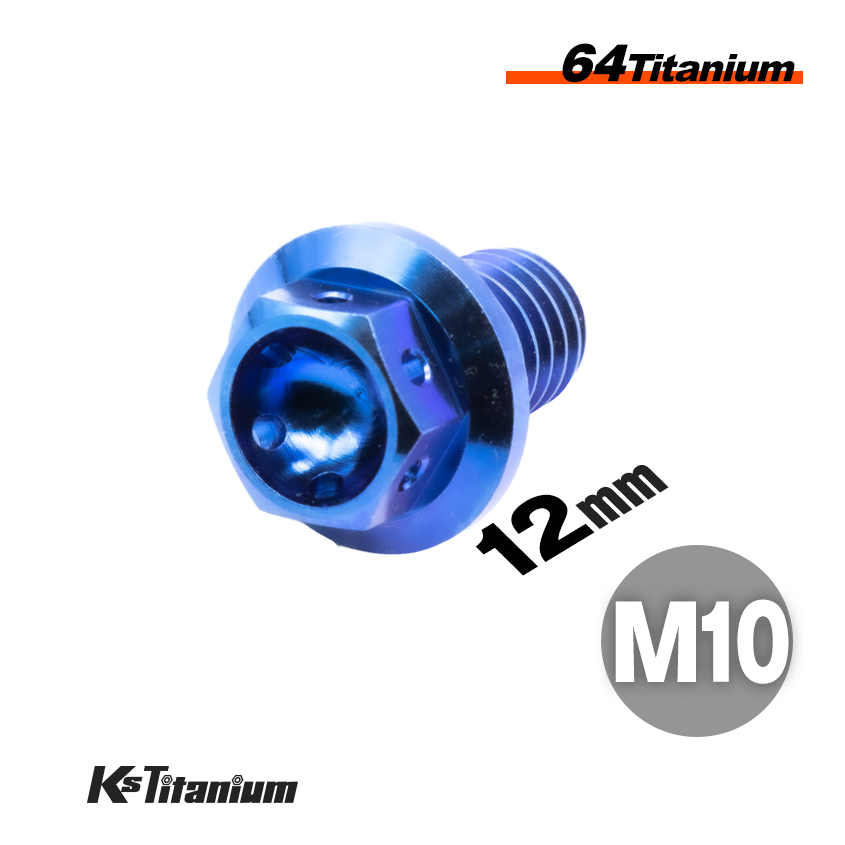 - チタンボルト M10×12 P1.25 ブルー 64チタン オイルドレンボルト ワイヤーロック ワイヤリング フランジ レース サーキット 競技用に