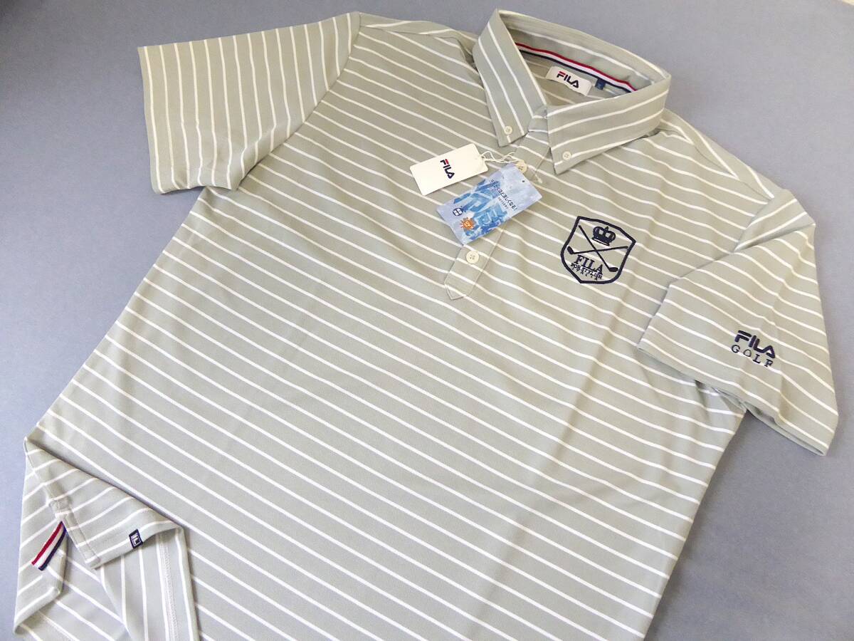 - FILA GOLF フィラ ゴルフ 保温冷感 UVカット ストレッチ ボーダー柄 ボタンダウン半袖ポロシャツ LL 灰 ③