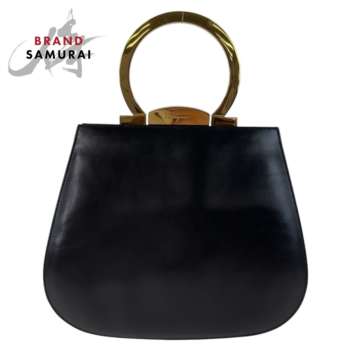 - サルヴァトーレフェラガモ ヴィンテージ ガンチーニ ブラック 黒 ゴールド金具 レザー ハンドバッグ バニティバッグ レディース 503647