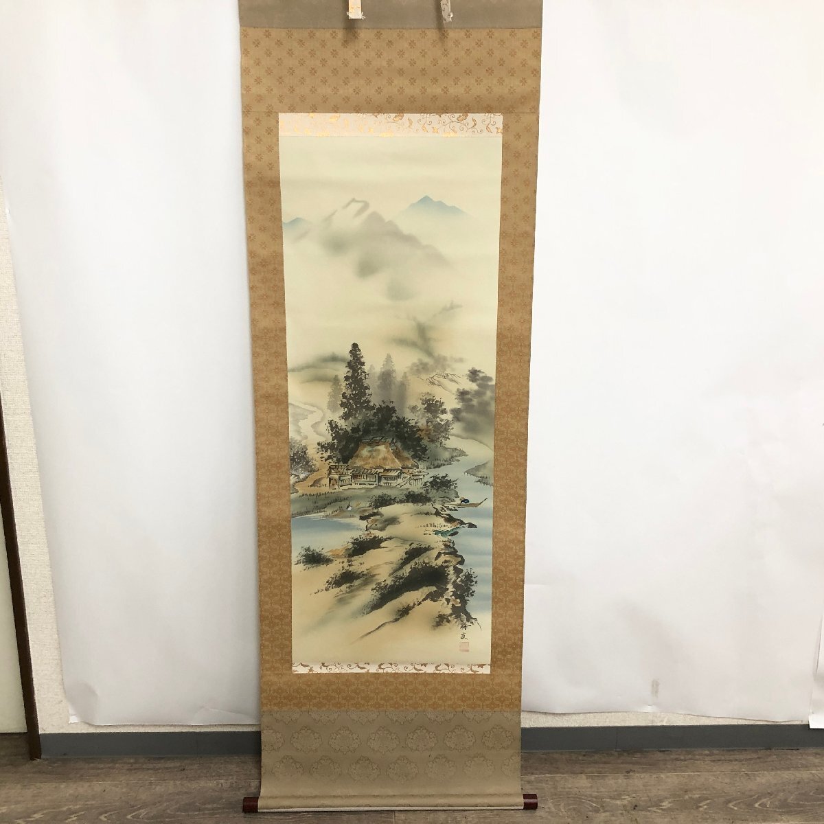 長尾梅友 掛軸 四神相応山水図 共箱 彩色 日本画 風水 厄除け 縁起物 25i菊E