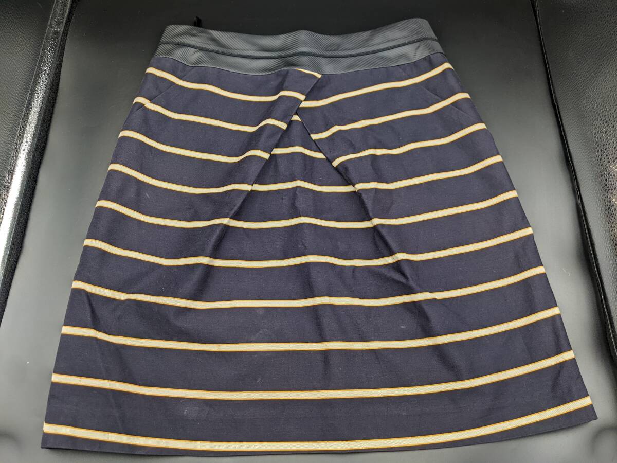 - ST/23区 オンワード樫山 タイトスカート ボーダー柄 サイズ 32 膝丈スカート 裏地付き ネイビー系 レディース ファッション ボトムス 洋服