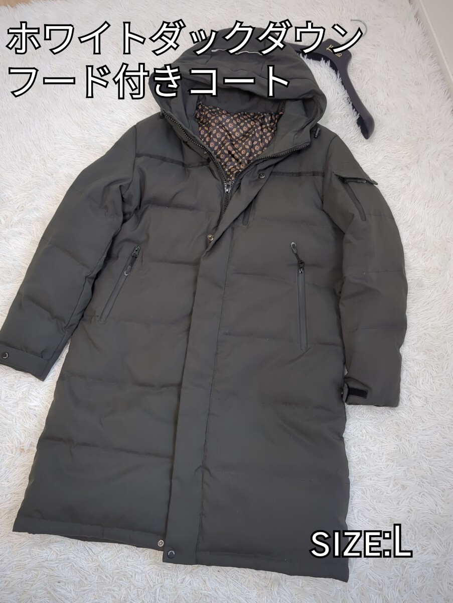 - 未使用品級 ホワイトダックダウン フード付きコート L ジャケット ダークグレー ダウンコート アウター 無地 冬
