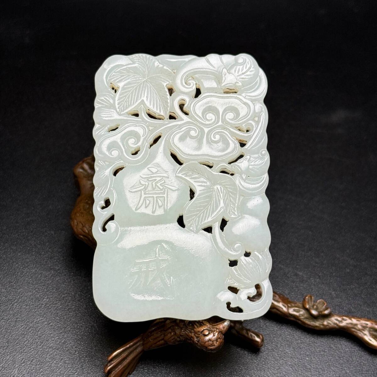 - 蔵友旧蔵出 和田玉製 細密彫 透空彫 仏教聖物 齋戒玉珮 玉質細膩 希少珍品 貴重品 置物 古賞物 中国古玩 中国古美術品