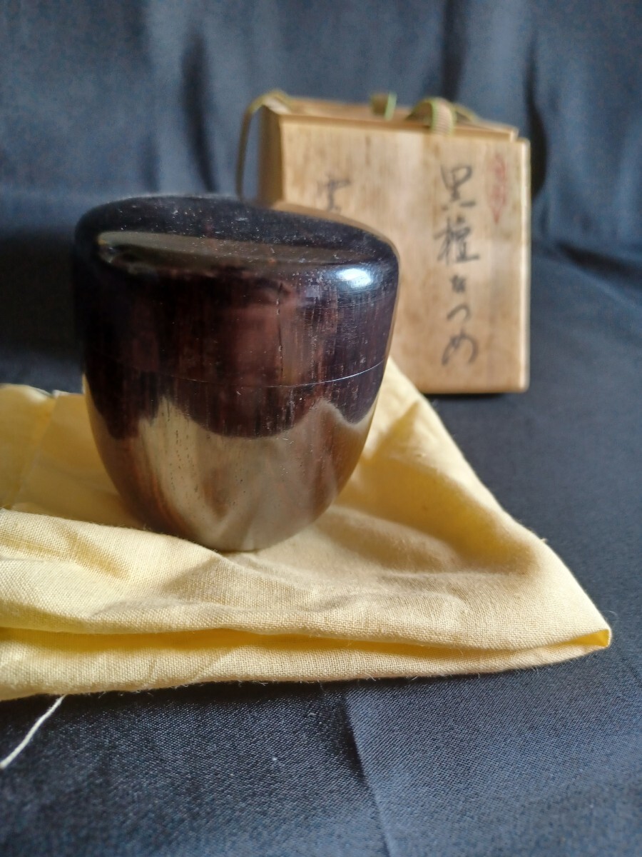 - (美品) 黒檀なつめ 雲州佐幸作 棗 茶道具