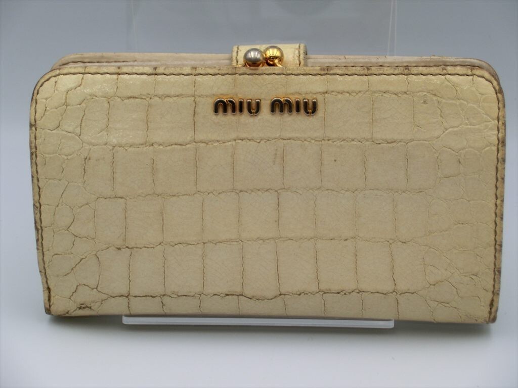 > 【BS04-25】【60サイズ】▲Miu Miu ミュウミュウ/エナメル 型押し がま口 二つ折り 長財布/レディース/※使用感・ヤケ有