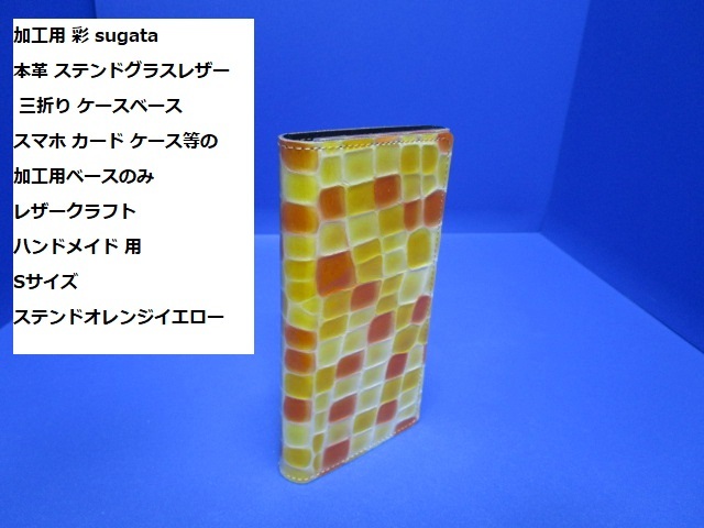 - 加工用 彩 sugata 本革 ステンドグラスレザー 三折り ケースベース スマホ ケース等の加工用ベースのみ Sサイズ ステンドオレンジイエロー