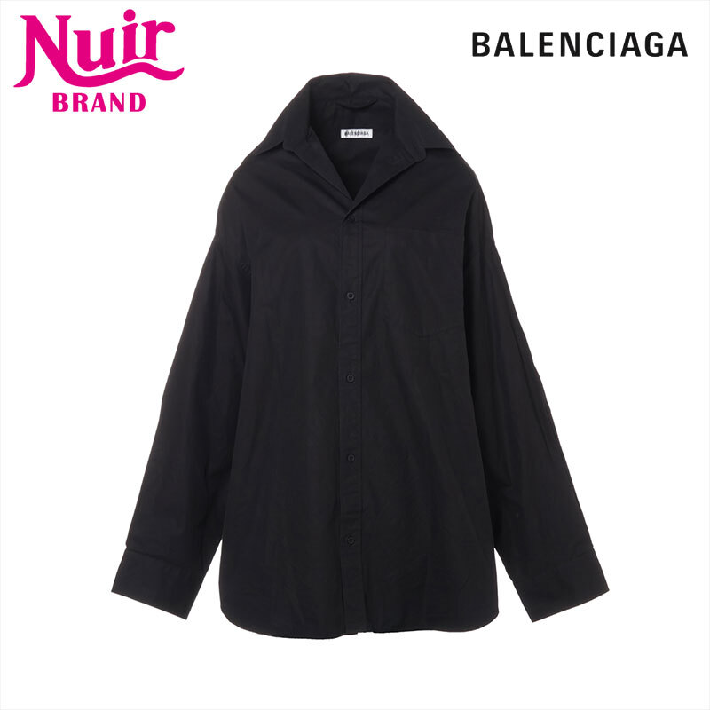 - バレンシアガ BALENCIAGA 長袖シャツ Size:L コットン バックロゴ Lifted Collar Shirt 22AW ブラック