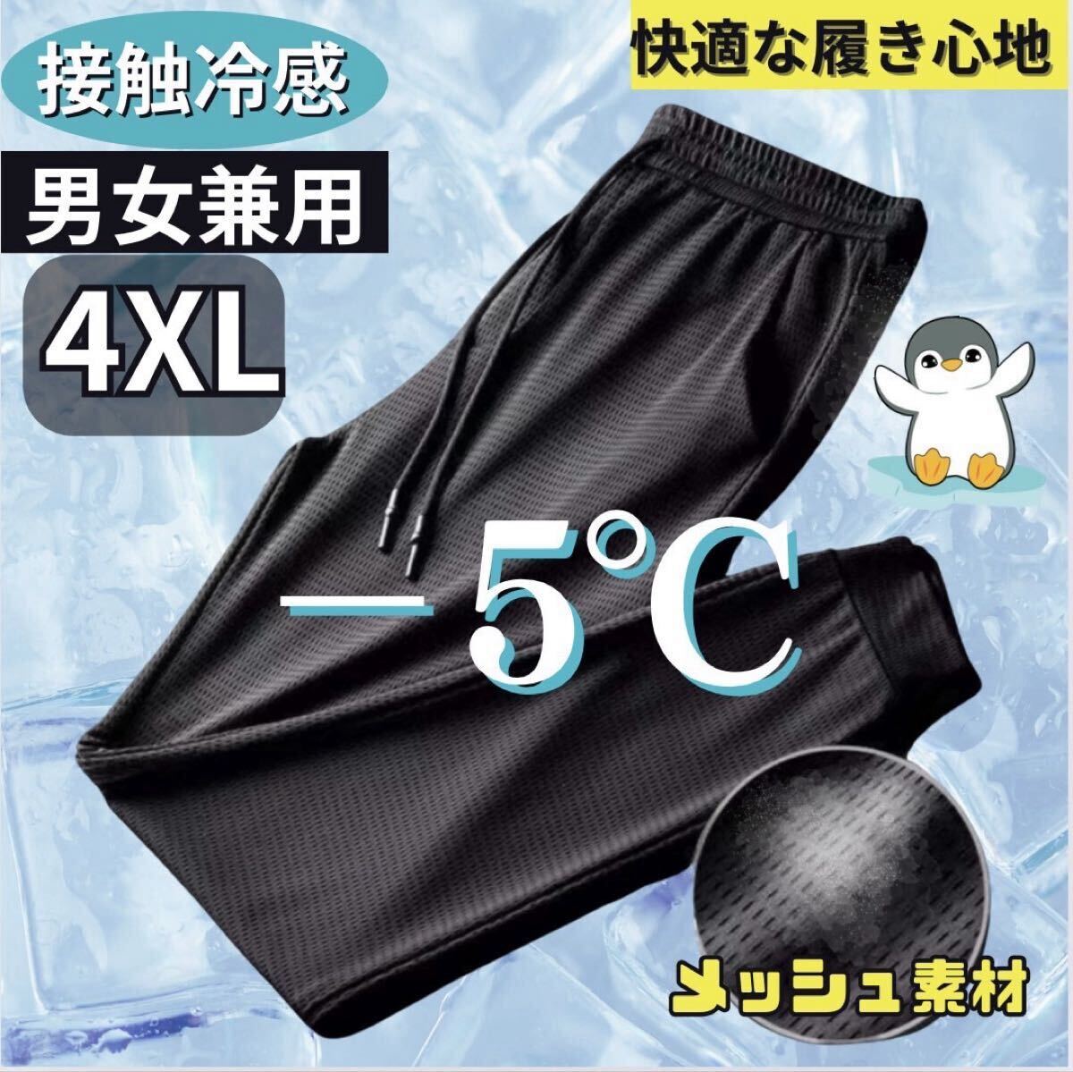 > 4XL接触冷感ジョガーパンツ ルームウェアジャージ ズボン ボトムス ブラック 黒 細身 スリム メッシュ 熱中症対策プレゼント メンズ