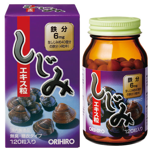 〇注意事項・送料750円が販売価格に含まれています・お取り寄せ商品です。弊社にて手配後、メーカー・卸業者からの直送になります。・まれにメーカー欠品、出荷遅延等が発生致します。問題発生時は別途メールにてご連絡致します。・配送方法の指定、日時指定、置き配、ギフト対応、他商品との同梱配送などは対応できません。・まとめ買いや複数購入の場合は通常より発送に時間が掛かる場合がございます・複数個口の場合、2階以上への搬入ができない場合があります。(その場合は1階での受け渡しとなります)・大型連休、お盆、年末年始などは発送をお休みさせていただく場合がございます・メーカー都合により、パッケージは予告なく変更される場合がございます・梱包用のダンボールはリサイクル品を使用させていただきます。・注文に関するご連絡(注文確定通知・発送通知など)はメールでご案内させていただきます※商品ページの内容について、少しでもご不明な点などがございましたら購入前に一度ご連絡ください〇商品説明お酒の付き合いが多い方、日頃体調を崩しやすい方に!1)しじみの濃縮エキス600mg配合(1日目安量4粒中)2)鉄分6mg含有生しじみ約40個分の鉄分を含有しています。 ※しじみ1個1gとした場合3)シスチン、ビタミン類を強化し、しじみの健康パワーをサポート。4)においがなく、利用しやすい糖衣タイプ本品はしじみの肉だけを丁寧に熱水にて抽出した後、新鮮なしじみの栄養素を壊さぬよう低温減圧濃縮法で作られたしじみ濃縮エキスを使用しています。さらに不足しがちな鉄分、美容に役立つシスチンやビタミン類をプラスし、無臭の糖衣タイプにしました。お酒の付き合いが多い方や日頃体調を崩しやすい方等の他、美容や鉄分不足に悩む女性にも日頃の体調管理に役立つサプリメントとしておすすめです。〇商品仕様内容量:120粒入数:24×1賞味期限:3年規格【原材料】還元麦芽糖水飴(国内製造、タイ製造)、しじみ濃縮エキス末(デキストリン、しじみペースト、食塩)、還元水飴/L-シスチン、V.C、結晶セルロース、ショ糖脂肪酸エステル、ピロリン酸第二鉄、糊料(アラビアガム)、V.B2、二酸化ケイ素、V.B6、着色料(二酸化チタン、カラメル)、セラック、V.A、葉酸、カルナウバロウ、V.B1【主成分配合量/製品4粒中】しじみ濃縮エキス末 600mg、L-シスチン 100mg、鉄 6mg(88%)、V.B2 11mg(786%)、V.B6 9mg(692%)、V.B12 48.0μg(2000%)、V.C 100mg(100%)、葉酸 200μg(83%)()内は栄養素等表示基準値2015(18歳以上、基準熱量2200kcal)に占める割合注意事項【ご利用方法】●1日4粒程度を目安に水またはお湯と共にお召し上がりください。●初めてご利用いただくお客様は少量からお召し上がりください。●1日の摂取目安量をお守りください。【保存方法・注意事項】●開封後はフタをしっかり締め、外箱に入れて保存し、早めにお召し上がりください。●お子様の手の届かない所に保管してください。●開封日を記入の上ご利用ください。●体質に合わない場合や、体調がすぐれない方はご利用を中止してください。●ビタミンB2の影響で尿が黄色くなることがあります。●疾病などで治療中の方、妊娠・授乳中の方は、召し上がる前に医師にご相談ください。●お子様へのご利用は控えてください△食生活は主食、主菜、副菜を中心に、食事のバランスを。(出典:オリヒロ株式会社)