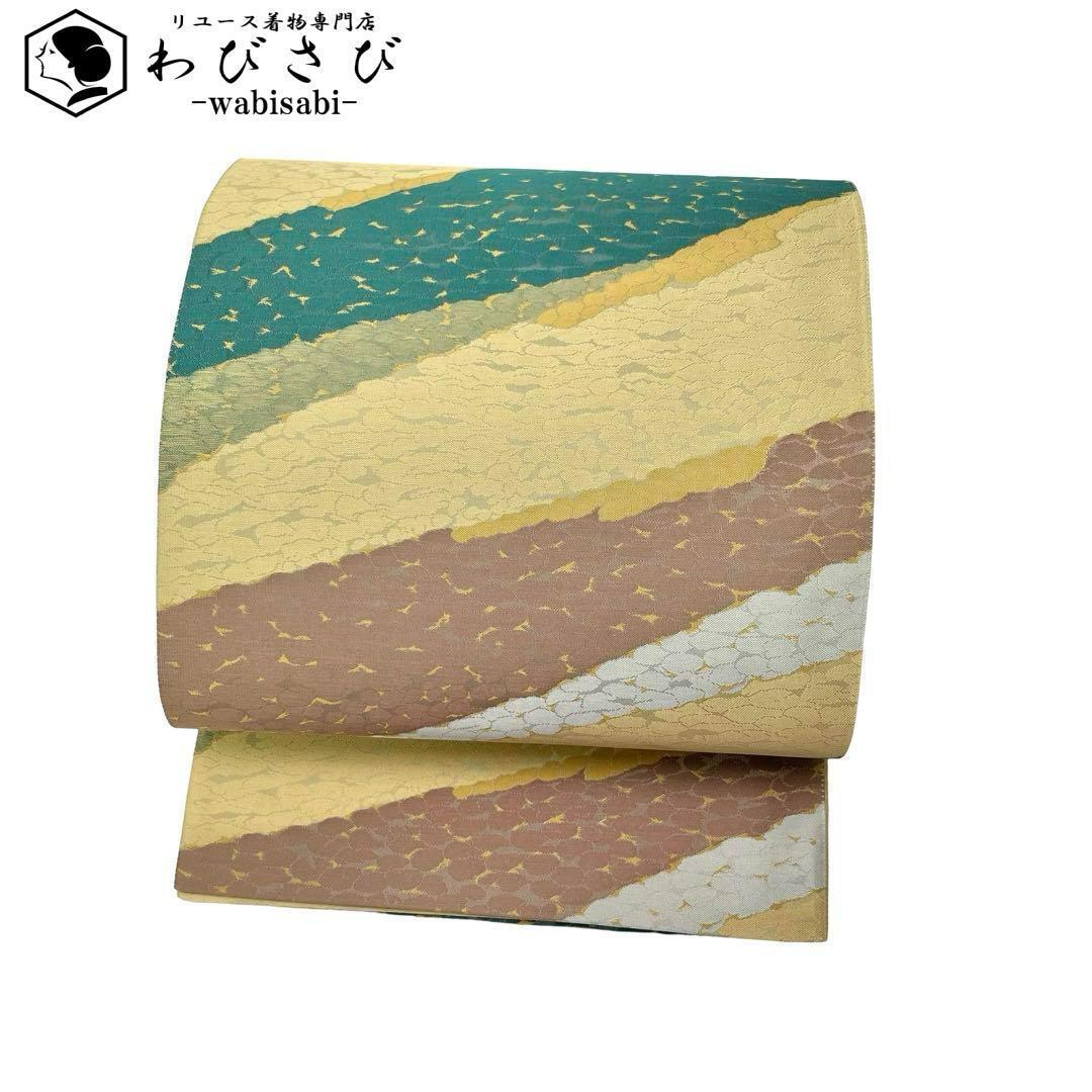 > 袋帯 紹巴織 抽象模様 麦藁色 O-3732 着物 きもの kimono 和服 和装 中古 リサイクル着物 【送料無料】