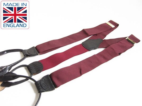 - 英国製/無地×レザー/ボタンタブ式/Y型 サスペンダー/メンズ/ワイン系/Yバック/ブレイシーズ/ビジネス/バンカー/投資家/D110