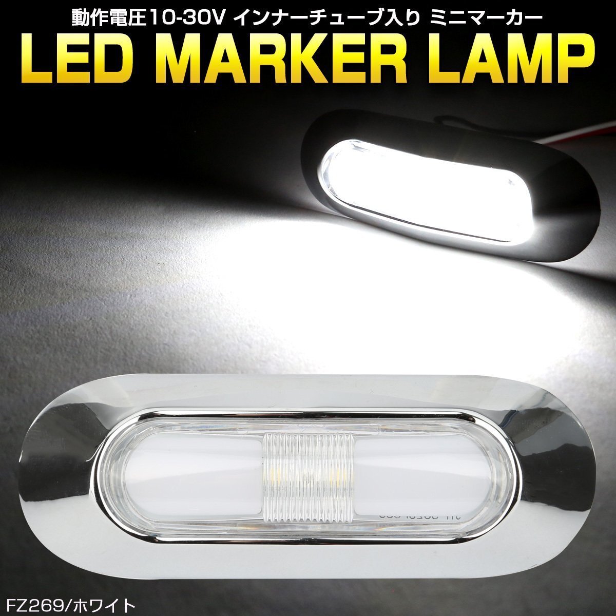 > インナーチューブ LEDミニマーカー 12V 24V ホワイト メッキ トラック バス サイドマーカー ランプ 防水 FZ269