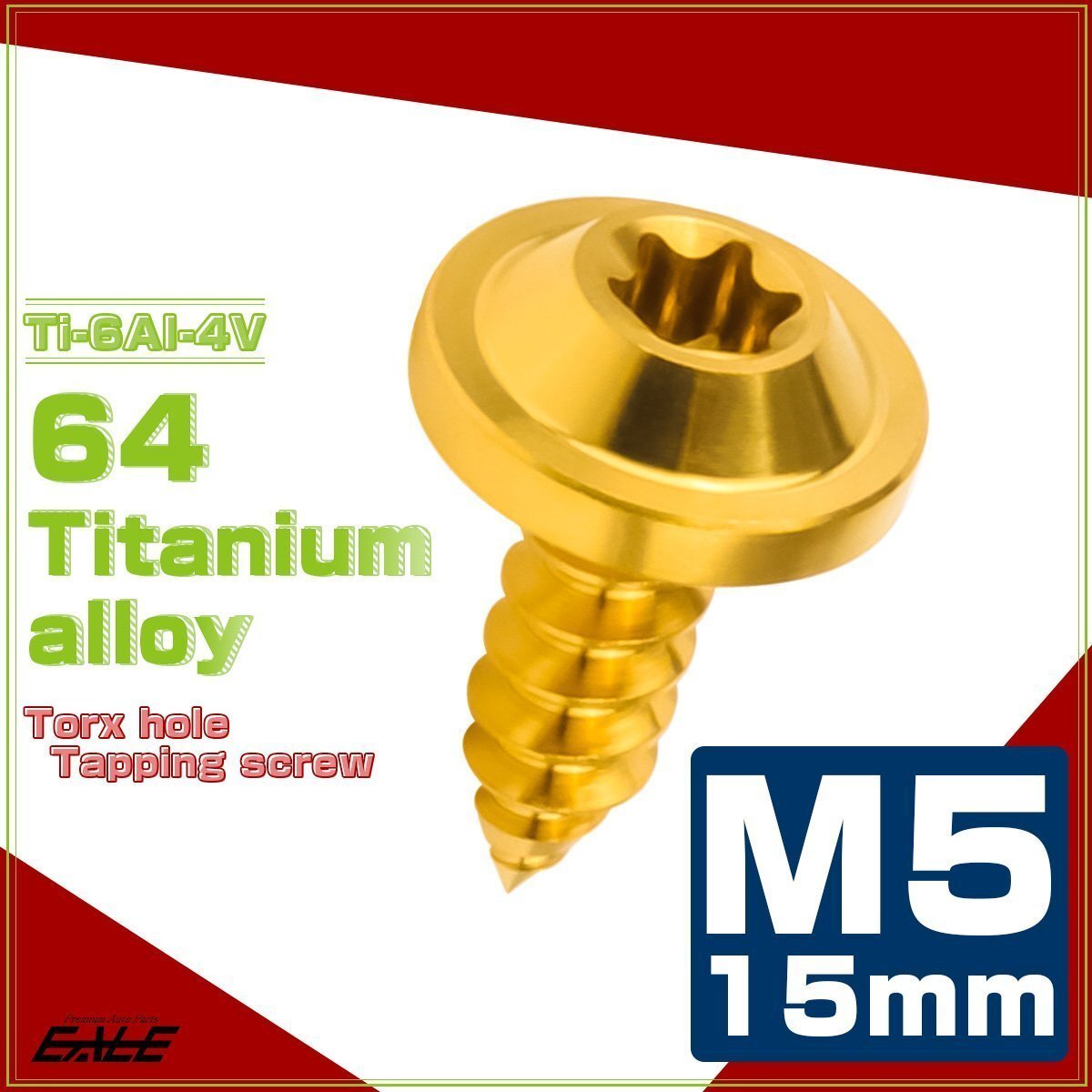- 64チタン M5×15mm タッピングネジ トルクス穴 フランジ付き ビス ゴールド JA1256