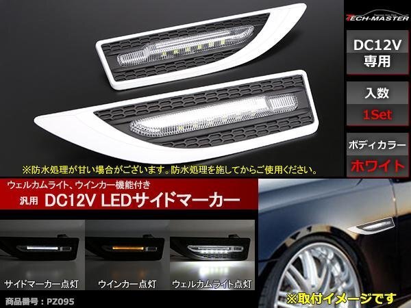 - 12V 汎用 LEDサイドマーカー アンダーライト付 ホワイト PZ095