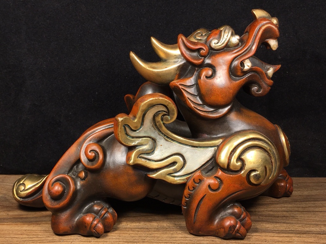 - 旧 清代 純銅鍍真金白銀 招財進宝 貔貅 古家具 中国古美術 古賞物 古置物 唐物 S79