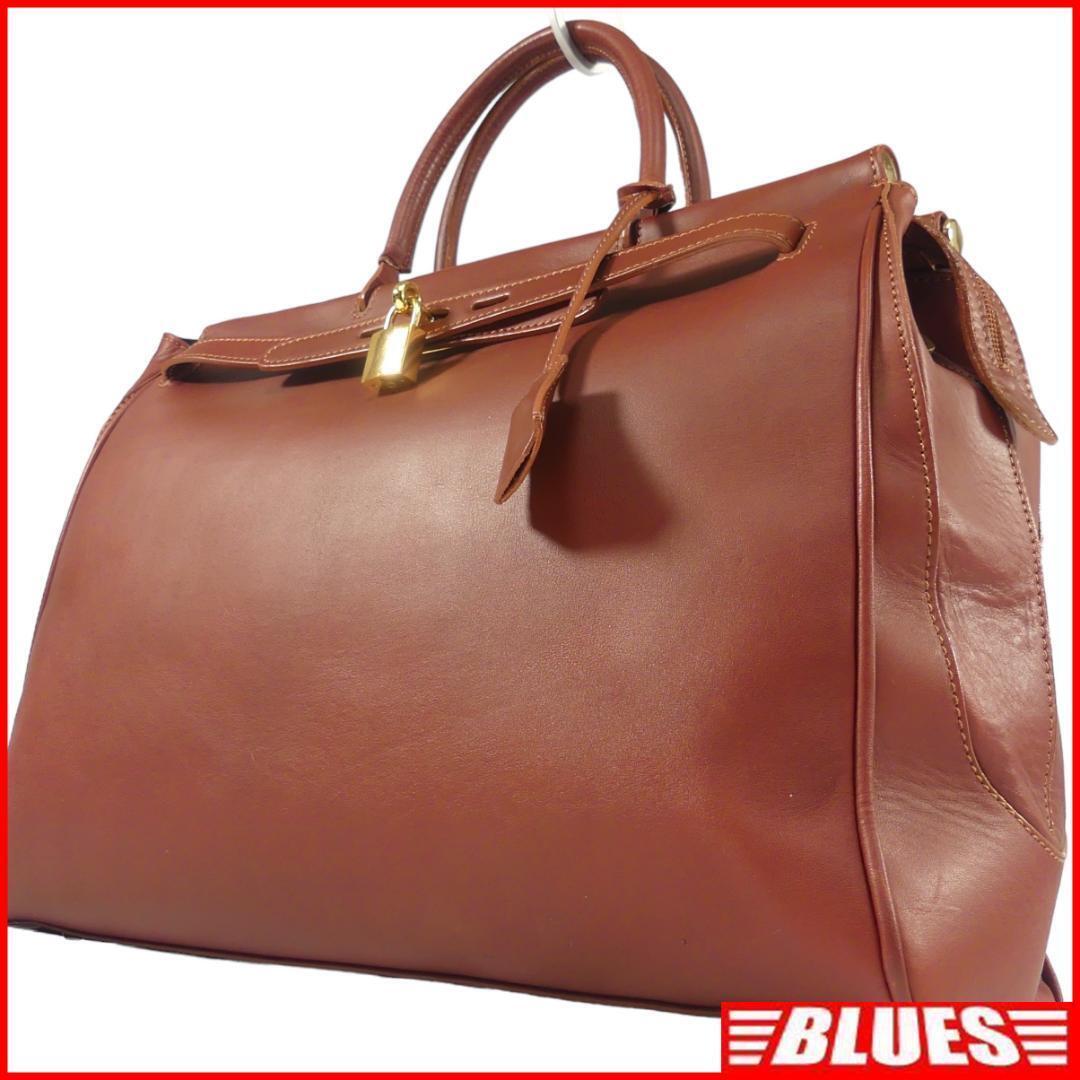 - 即決★Elegance★オールレザーハンドバッグ エレガンス 茶 鍵付き 本革 手提げバッグ 本皮 旅行 カバン 出張 鞄