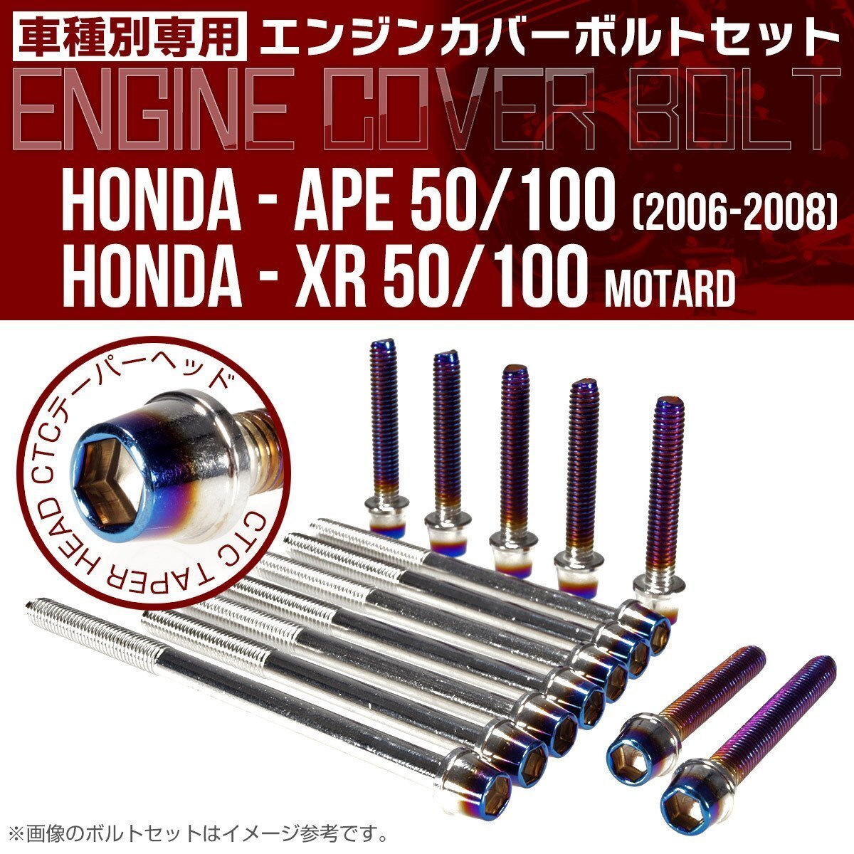 > ホンダ エイプ 50/100 06-08 / XR50 XR100 エンジンカバー ボルト14本セット CTCテーパーヘッド シルバー/焼きチタンカラー TB6182