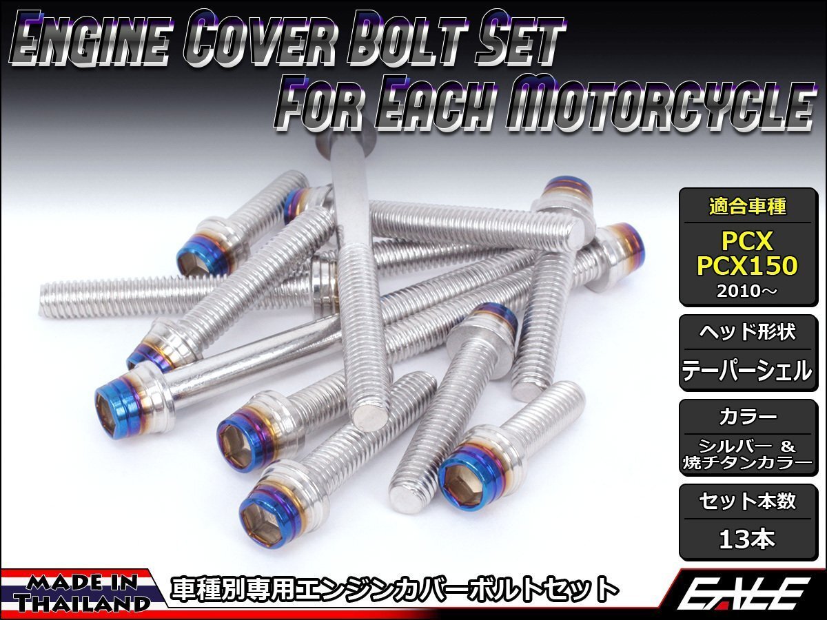 - PCX/PCX150用 エンジンカバー ボルト13本セット ステンレス製キャップボルト使用 CTCテーパーシェルヘッド シルバー&焼チタンカラー TB6061