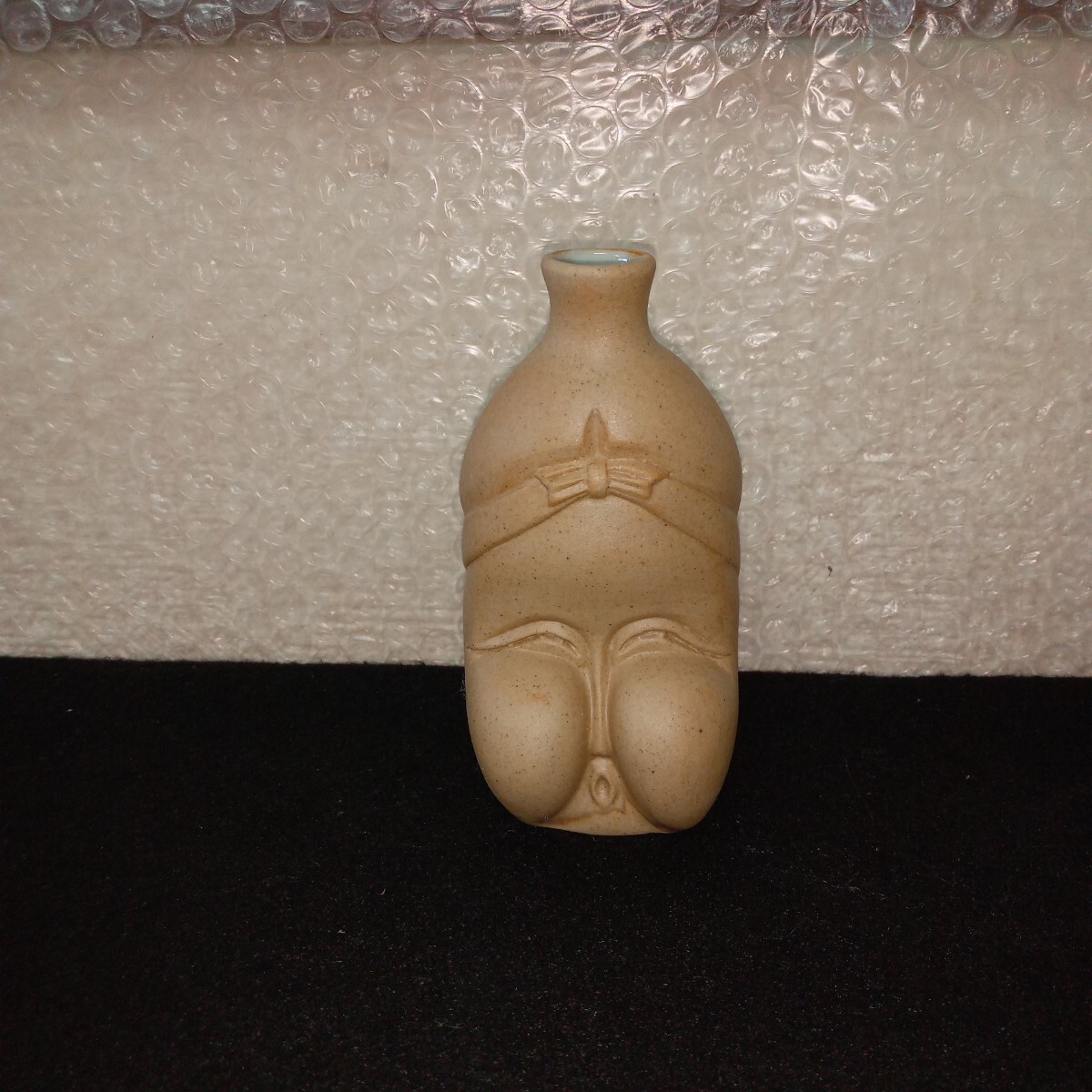 - 雑A-023/ 陶器 酒器 ぐい呑 お多福 徳利 インテリア ヴィンテージ 工芸品 約11.5センチ/L11/70903