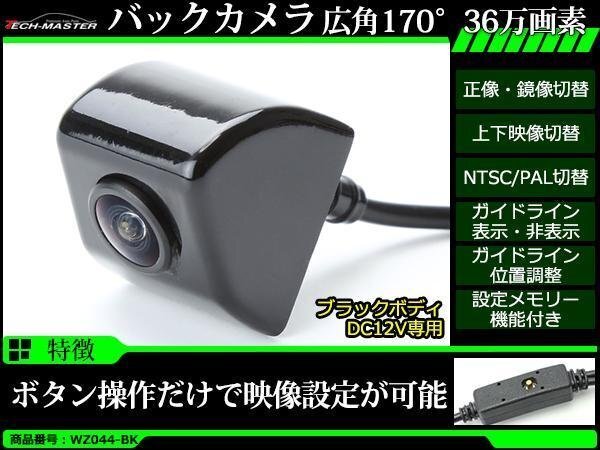 > 車両用 バックカメラ 広角170度 36万画素 ボタン操作 正像 鏡像 上下反転 NTSC/PAL ガイドライン 位置調整可能 DC12V ブラック WZ044-BK