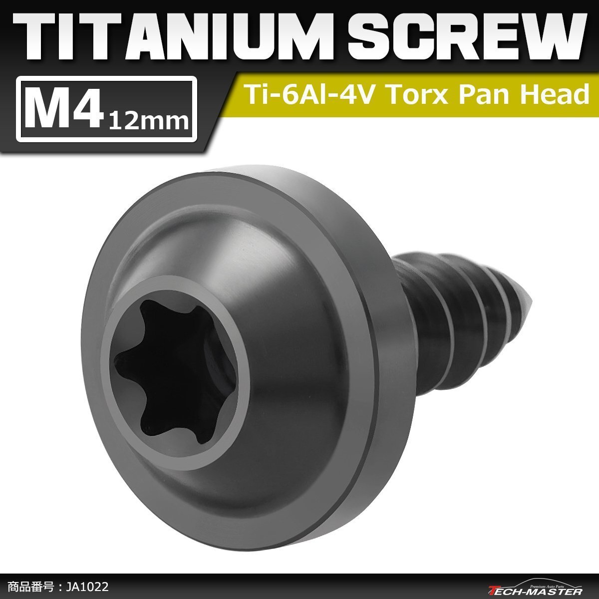 > M4×12mm 64チタン合金 タッピングネジ トルクス穴 フランジ付き ブラック 車/バイク/自転車 1個 JA1022
