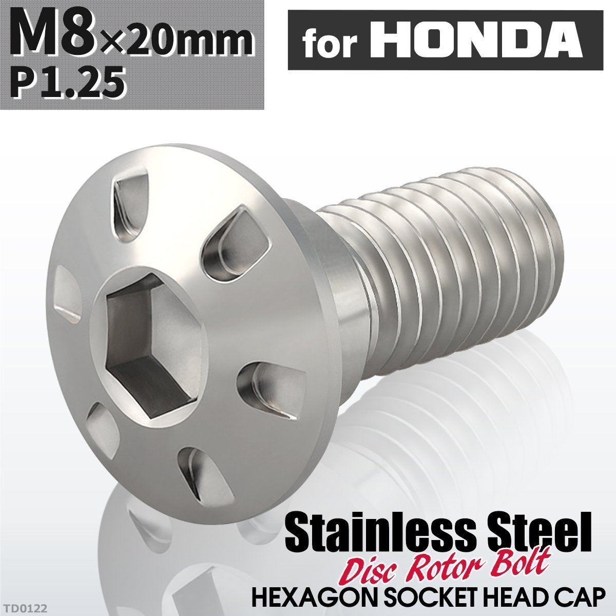 > M8×20mm P1.25 ローターボルト ステンレス デザインヘッド 六角穴付き ホンダ車用 シルバーカラー 1個 TD0122