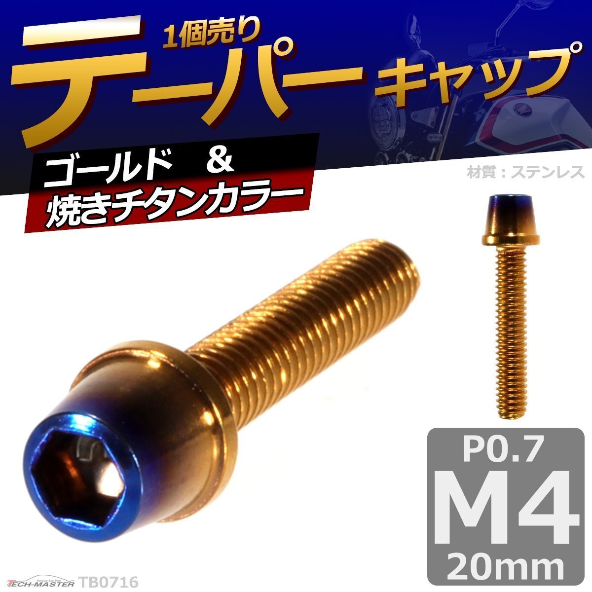 > M4×20mm P0.7 テーパー キャップボルト ステンレス 車/バイク/自転車 ドレスアップ パーツ ゴールド&焼きチタンカラー 1個 TB0716
